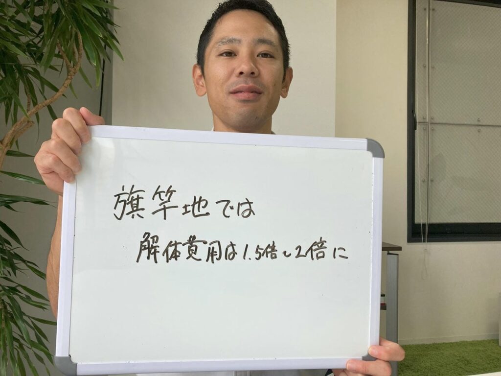 竿の部分が狭いため、大型の重機が直接敷地内に入ることが難しい場合があります。その場合、小型の重機を使用したり、手作業での解体が増えたりするため、工期が長くなり、人件費がかさむ可能性があります。 - 廃材の搬出